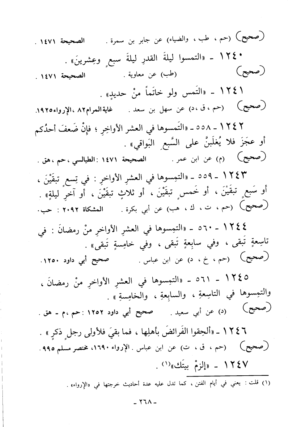1245 - 561 - «التمسوها في العشر الأواخر من رمضان والتمسوها في التاسعة والسابعة والخامسة» .
