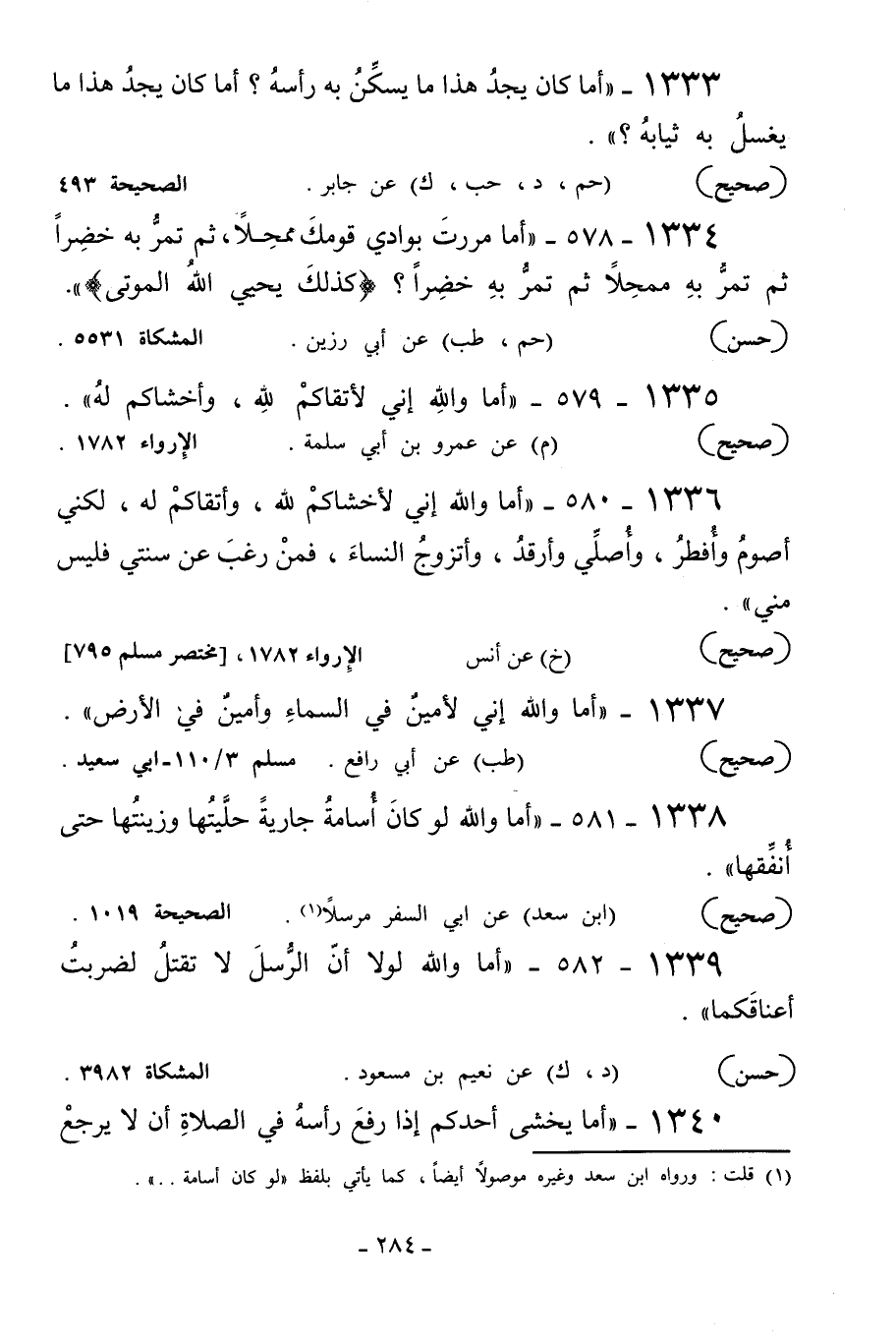 1336 - 580 - «أما والله إني لأخشاكم لله وأتقاكم له لكني أصوم وأفطر وأصلي وأرقد وأتزوج النساء فمن رغب عن سنتي فليس مني» .