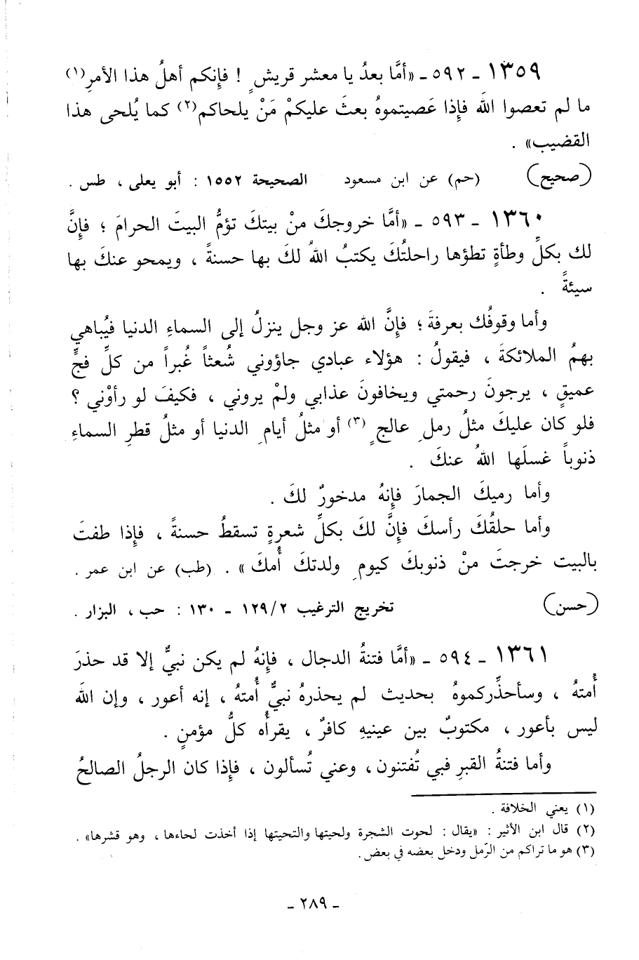 1359 - 592 - «أما بعد يا معشر قريش! فإنكم أهل هذا الأمر1 ما لم تعصوا الله فإذا عصيتموه بعث عليكم من يلحاكم2 كما يلحى هذا القضيب» .
