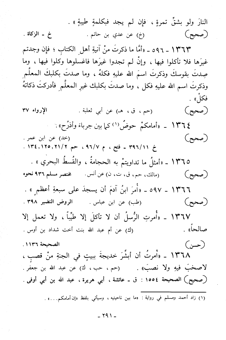(صحيح) ... [خ] عن عدي بن حاتم. خ – الزكاة.