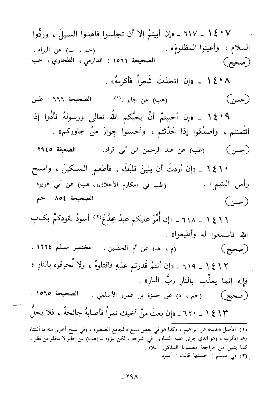 1 الأصل [طب] عن أبي هريرة، وكذا هوفي بعض نسخ [الجامع الصغير] ، وفي نسخ أخرى منه ما أثبتناه وهوالأقرب، وهوالذي جرى عليه المناوي في شرحه، لكن عزوه لـ[هب] عن جابر لا يخلوا من نظر، كما يتبين من مراجعة مصدرنا المذكور أعلاه.