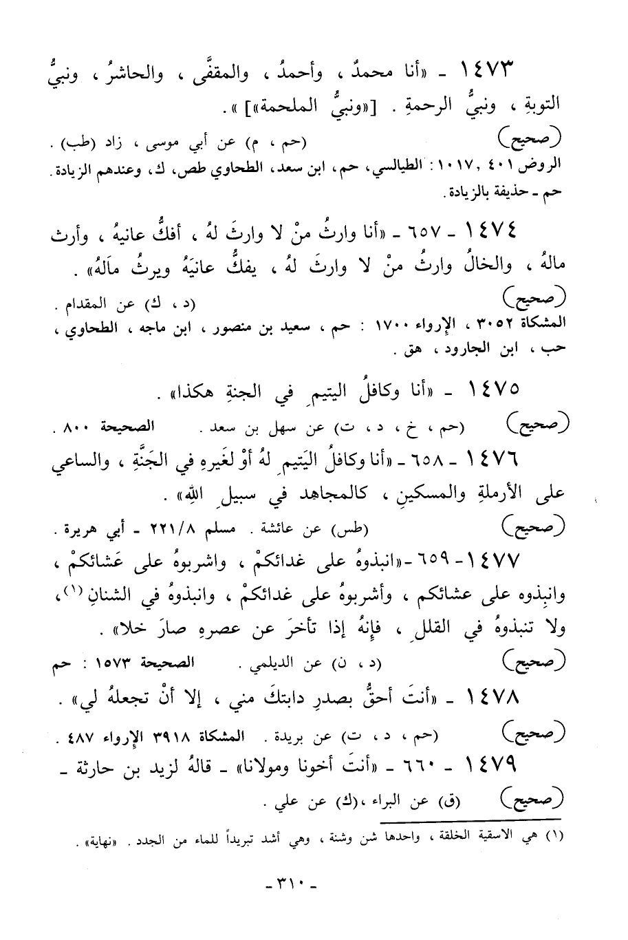 1473 - «أنا محمد وأحمد والمقفي والحاشر ونبي التوبة ونبي الرحمة» .