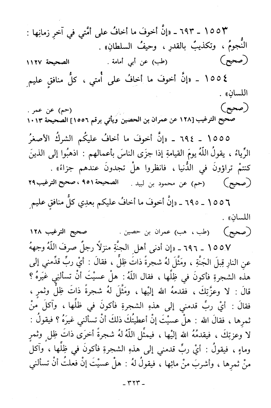 1553 - «إن أخوف ما أخاف على أمتي في آخر زمانها: النجوم وتكذيب بالقدر وحيف السلطان» .