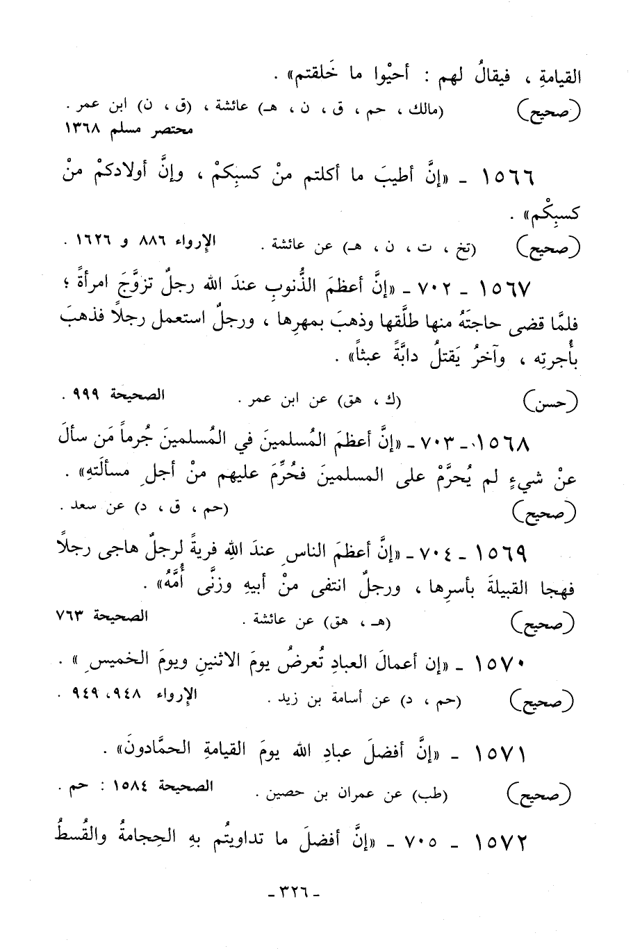 1566 - «إن أطيب ما أكلتم من كسبكم وإن أولادكم من كسبكم» .