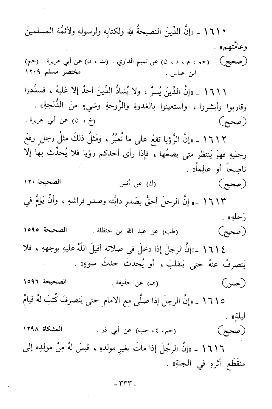 1610 - «إن الدين النصيحة لله ولكتابه ولرسوله ولأئمة المسلمين وعامتهم» .