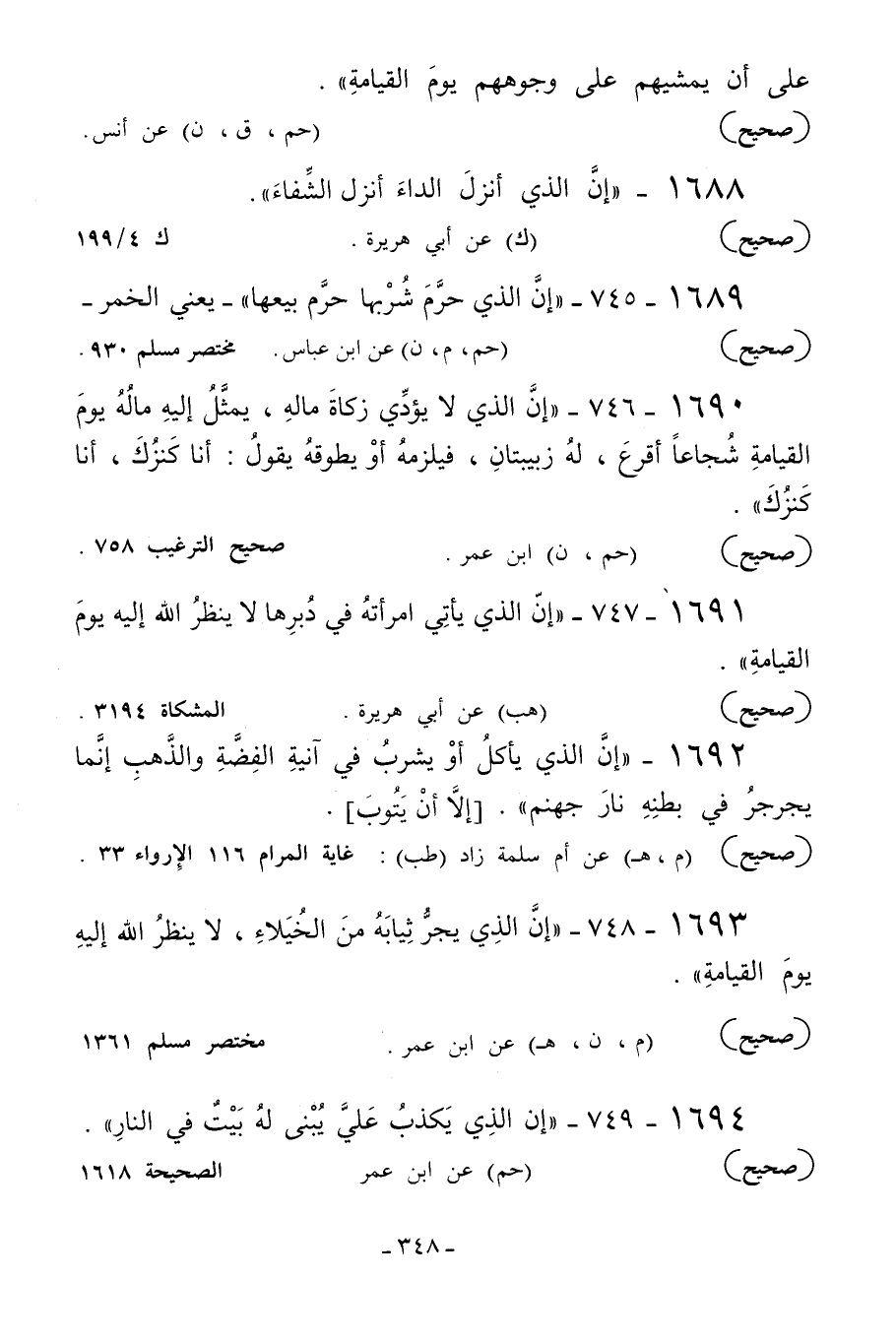 1692 - «إن الذي يأكل أو يشرب في آنية الفضة والذهب إنما يجرجر في بطنه نار جهنم» .