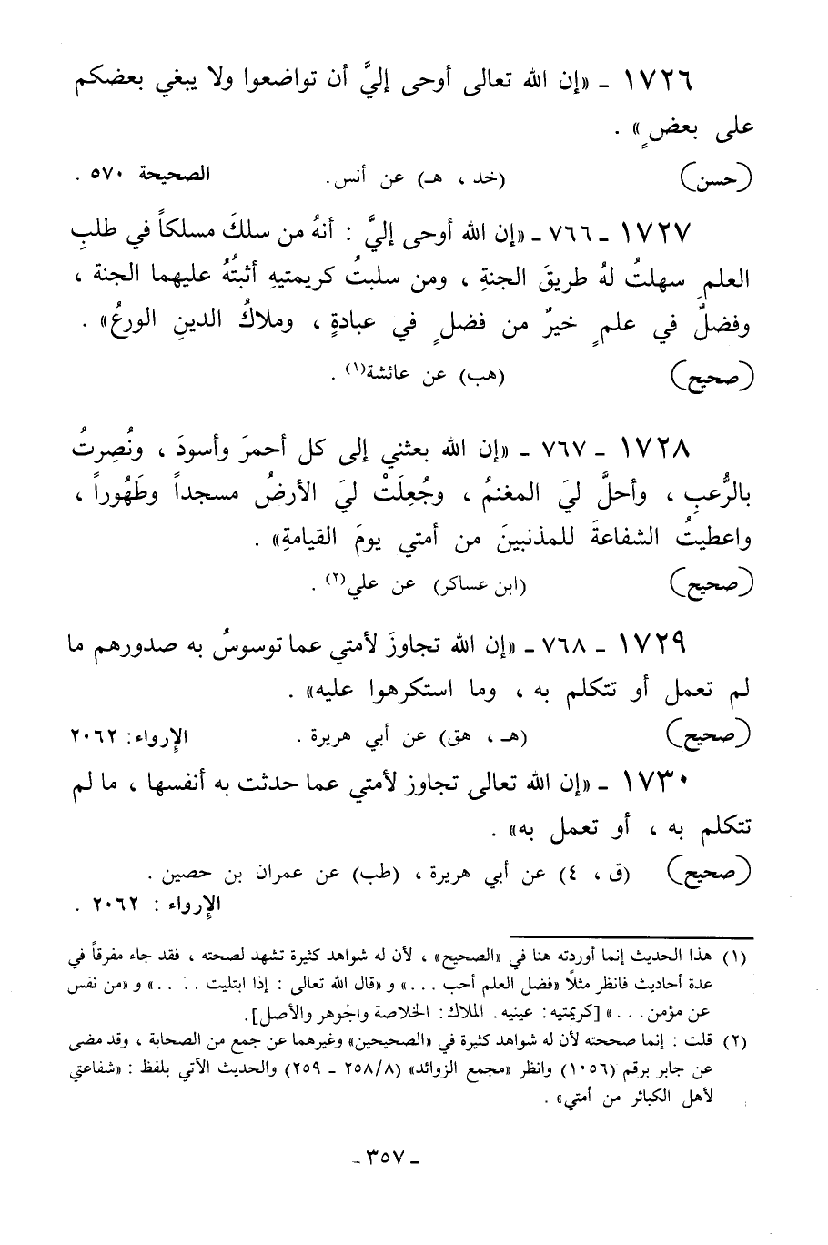 1730 - «إن الله تعالى تجاوز لأمتي عما حدثت به أنفسها ما لم تتكلم به أو تعمل به» .