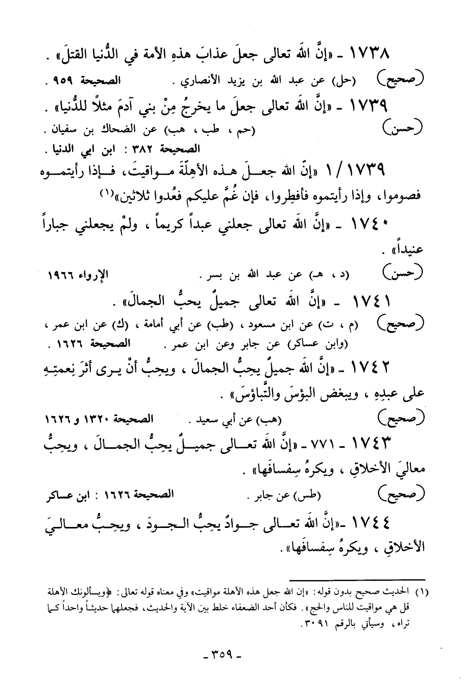 1741 - «إن الله تعالى جميل يحب الجمال» .