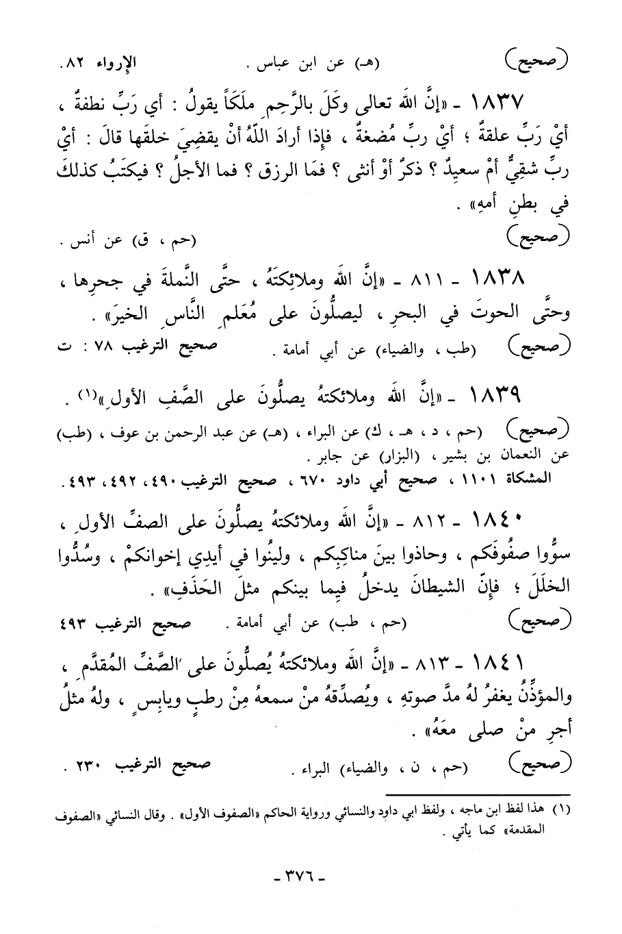 1839 - «إن الله وملائكته يصلون على الصف الأول» 1.