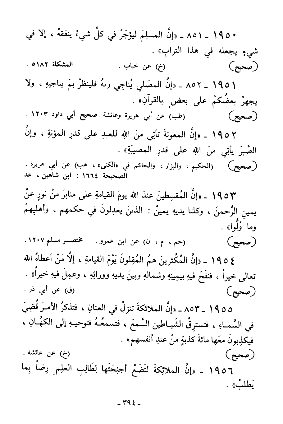 1954 - «إن المكثرين هم المقلون يوم القيامة إلا من أعطاه الله تعالى خيرا فنفح فيه بيمينه وشماله وبين يديه وورائه وعمل فيه خيرا» .