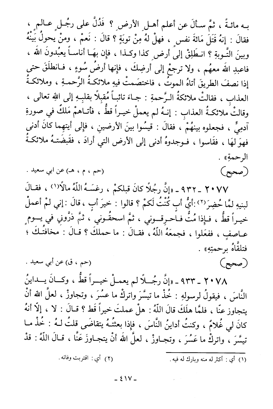 2078 - 933 - "إن رجلا لم يعمل خيرا قط وكان يداين الناس فيقول لرسوله: خذ ما تيسر واترك ما عسر وتجاوز لعل الله أن يتجاوز عنا فلما هلك قال الله: هل عملت خيرا قط؟ قال: لا إلا أنه كان لي غلام كنت أداين الناس فإذا بعثته يتقاضى قلت له: خذ ما تيسر واترك ما عسر وتجاوز لعل الله أن يتجاوز عنا قال الله: قد