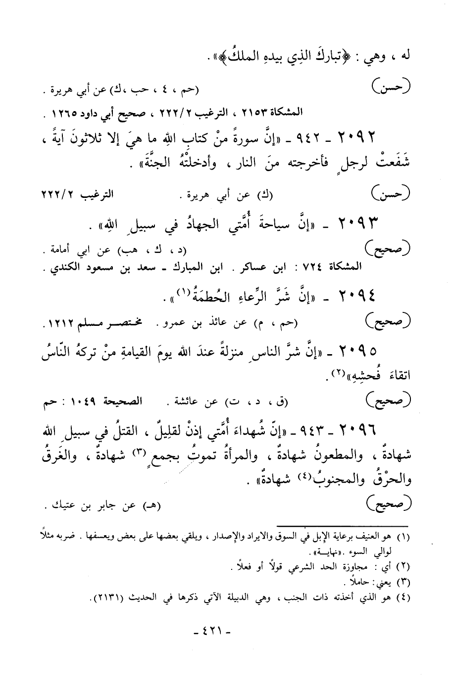 2092 - 942 - «إن سورة من كتاب الله ما هي إلا ثلاثون آية شفعت لرجل فأخرجته من النار وأدخلته الجنة» .