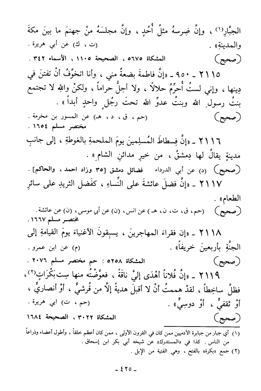2119 - «إن فلانا أهدى إلي ناقة فعوضته منها ست بكرات2 فظل ساخطا لقد هممت أن لا أقبل هدية إلا من قرشي أو أنصاري أو ثقفي أو دوسي» .