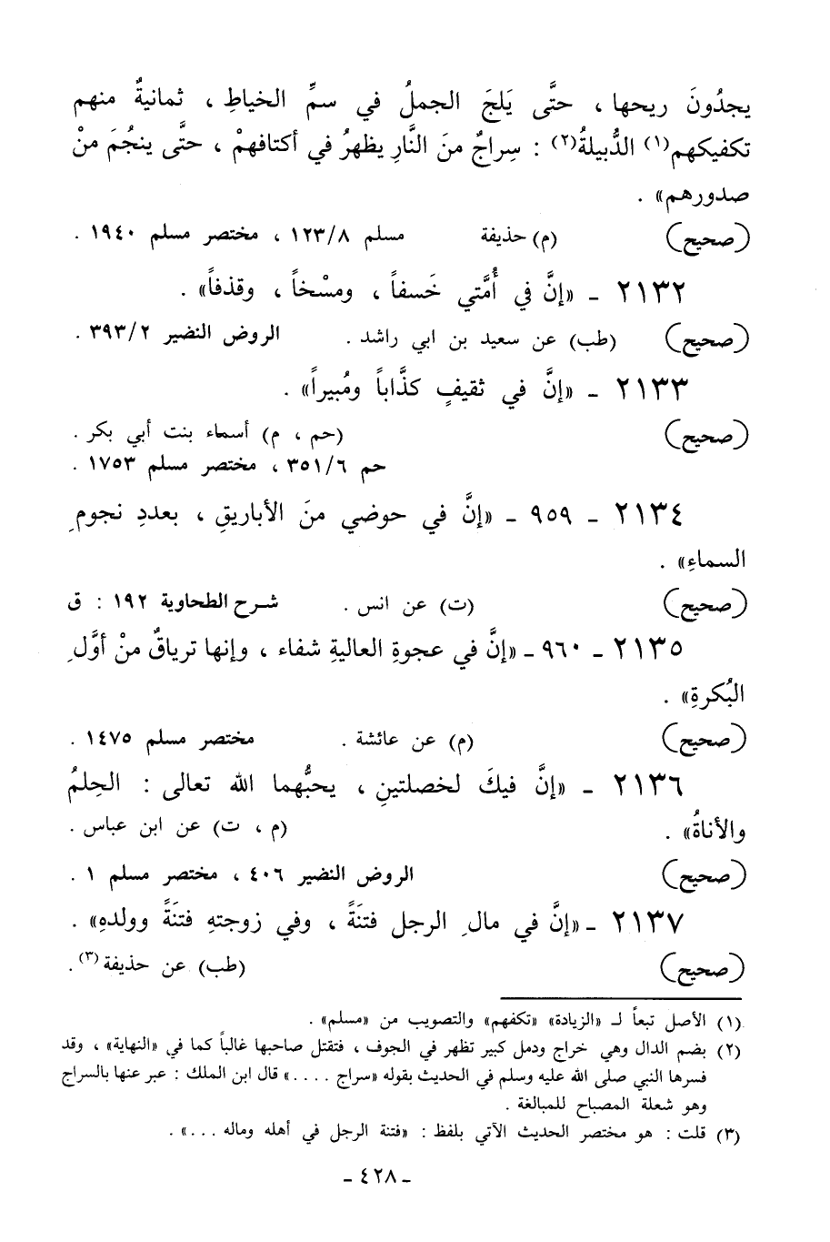 2135 - 960 - «إن في عجوة العالية شفاء وإنها ترياق من أول البكرة» .