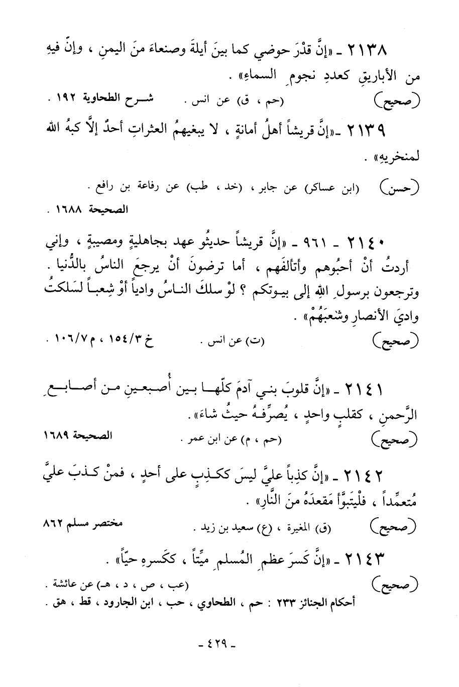 2138 - «إن قدر حوضي كما بين أيلة وصنعاء من اليمن وإن فيه من الأباريق كعدد نجوم السماء» .
