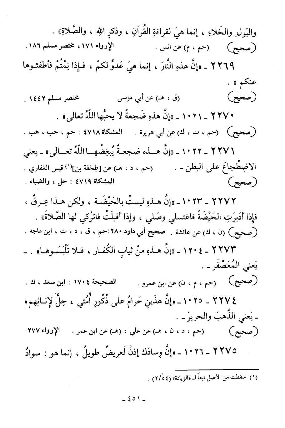 2271 - 1022 - «إن هذه ضجعة يبغضها الله تعالى» - يعني الاضطجاع على البطن -.