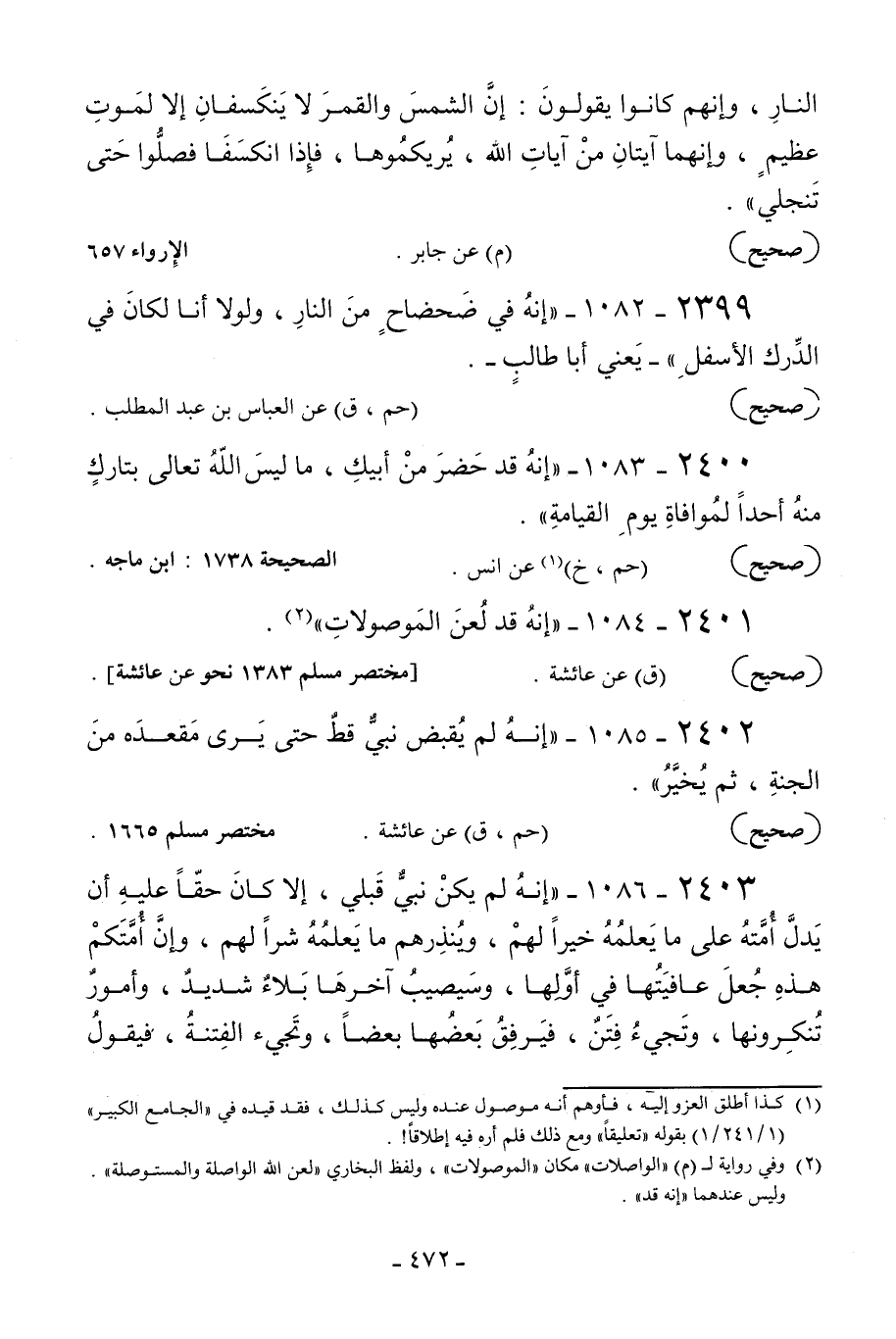 2399 - 1082 - «إنه في ضحضاح من النار ولولا أنا لكان في الدرك الأسفل» - يعني أبا طالب - ".