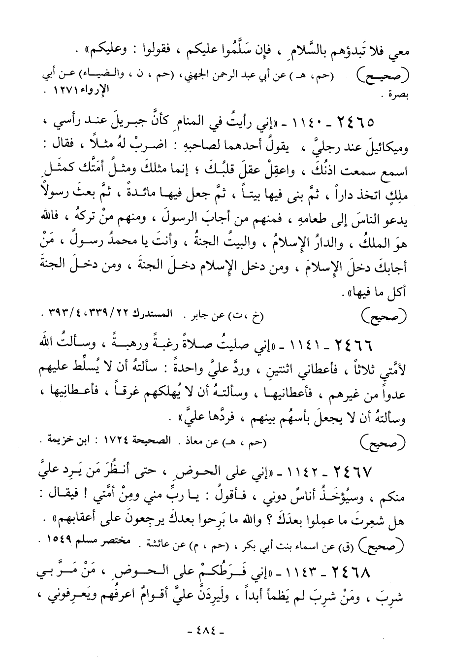 2468 - 1143 - "إني فرطكم على الحوض من مر بي شرب ومن شرب لم يظمأ أبدا وليردن علي أقوام أعرفهم ويعرفوني