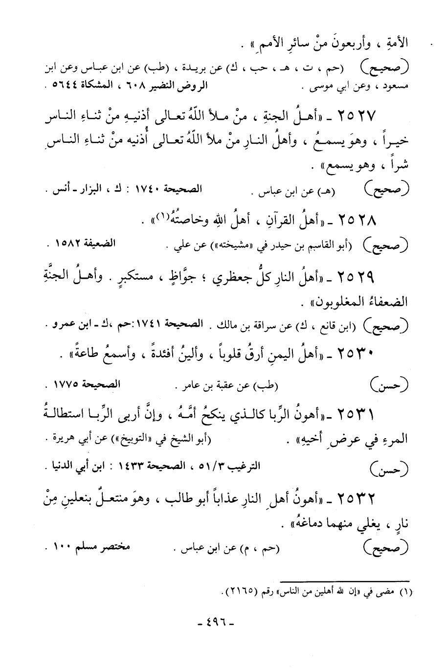 2529 - «أهل النار كل جعظري جواظ مستكبر وأهل الجنة الضعفاء المغلوبون» .