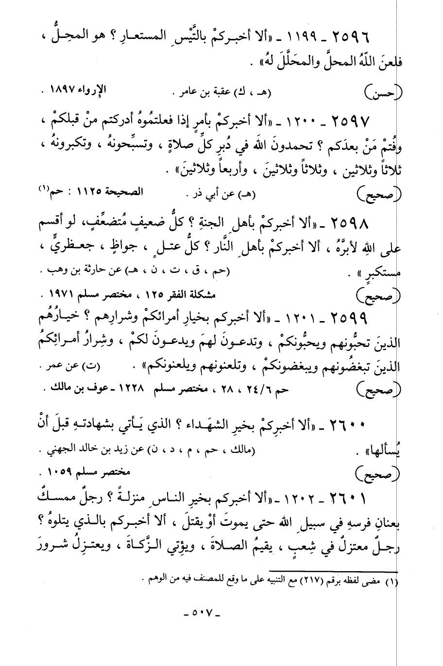 2599 - 1201 - «ألا أخبركم بخيار أمرائكم وشرارهم؟ خيارهم الذين تحبونهم ويحبونكم وتدعون لهم ويدعون لكم وشرار أمرائكم الذين تبغضونهم ويبغضونكم وتلعنونهم ويلعنونكم» .