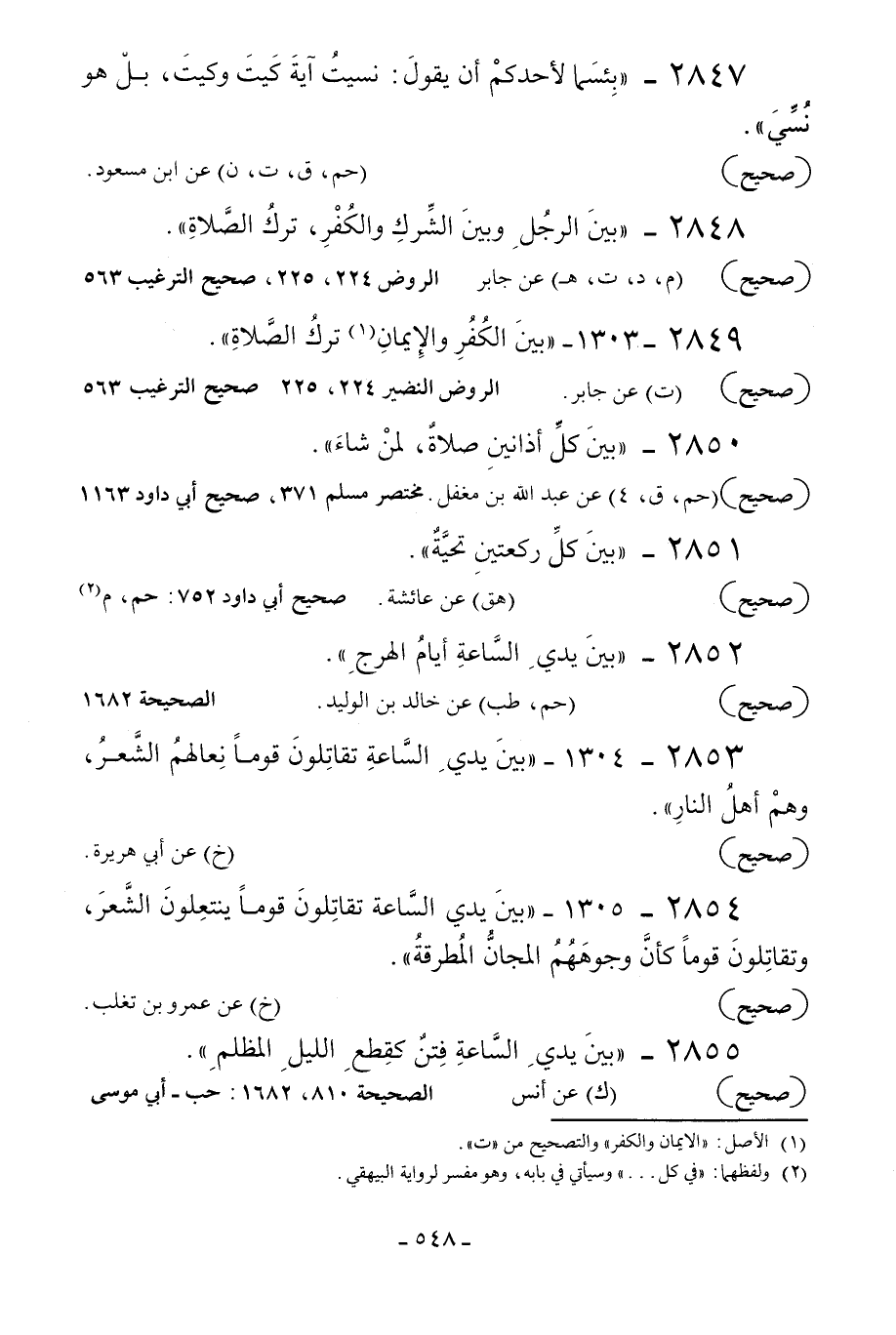 2849 - 1303 - «بين الكفر والإيمان1 ترك الصلاة» .