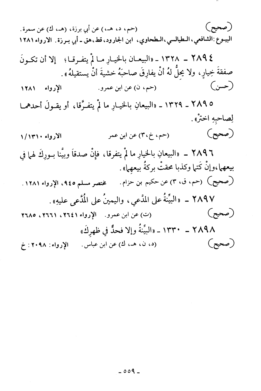 2895 - 1329 - «البيعان بالخيار ما لم يتفرقا أو يقول أحدهما لصاحبه اختر» .