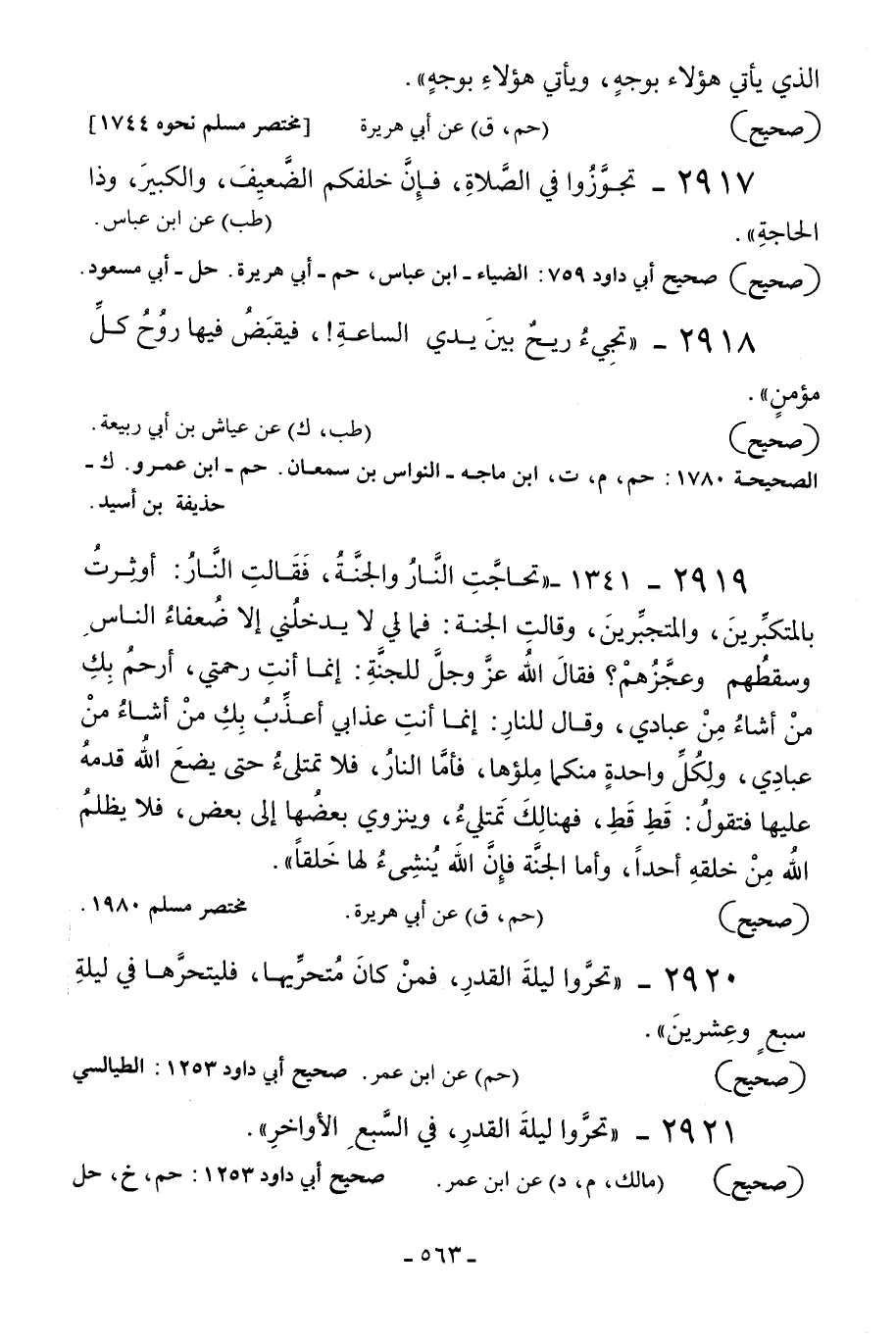 2920 - «تحروا ليلة القدر فمن كان متحريها فليتحرها في ليلة سبع وعشرين» .