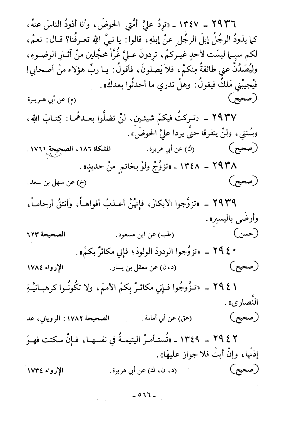 2941 - «تزوجوا فإني مكاثر بكم الأمم ولا تكونوا كرهبانية النصارى» .