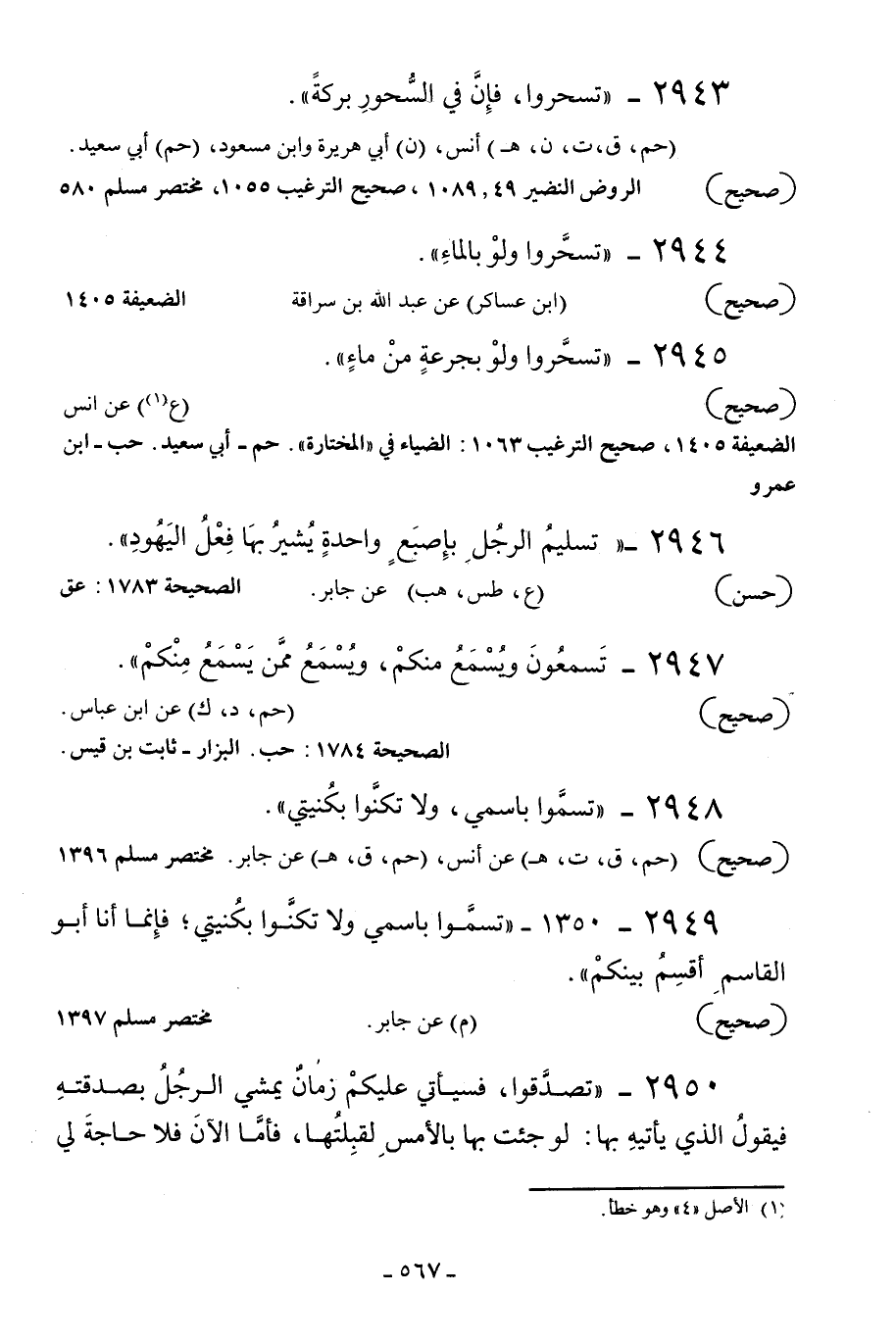 2944 - «تسحروا ولو بالماء» .