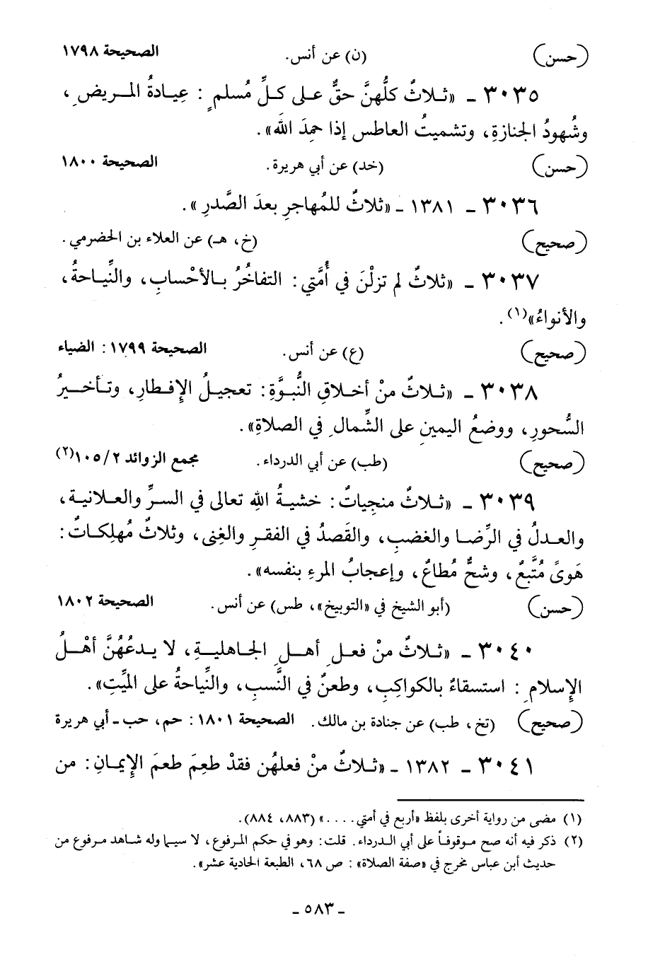 3036 - 1381 - «ثلاث للمهاجر بعد الصدر» .