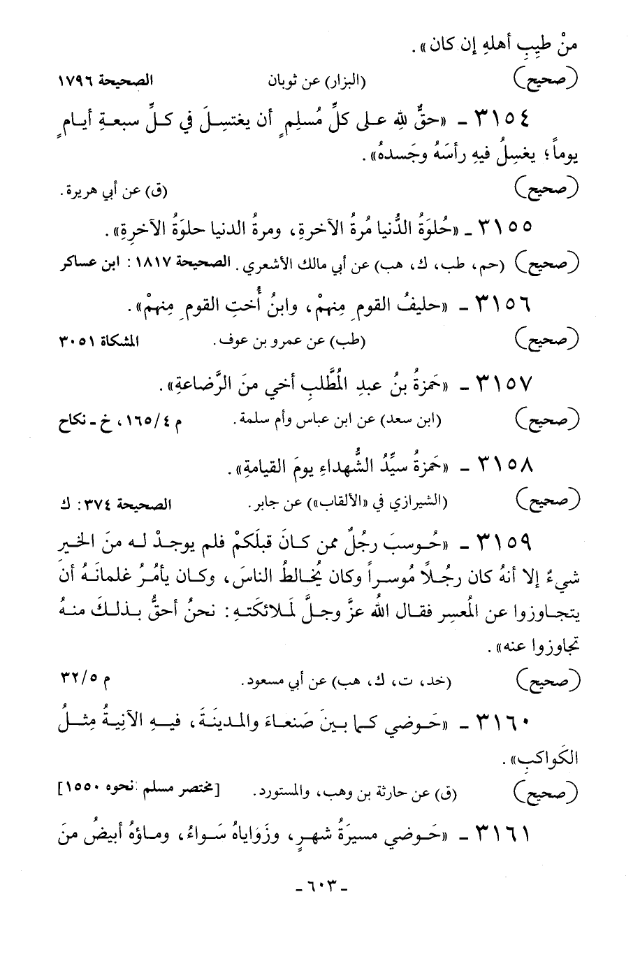 3154 - «حق لله على كل مسلم أن يغتسل في كل سبعة أيام يوما يغسل فيه رأسه وجسده» .
