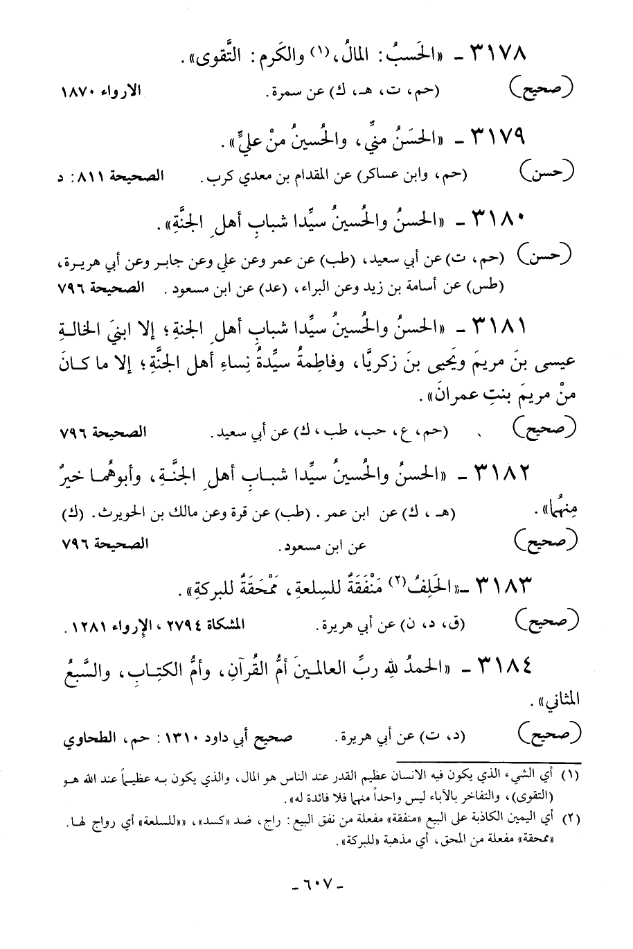 3182 - «الحسن والحسين سيدا شباب أهل الجنة وأبوهما خير منهما» .