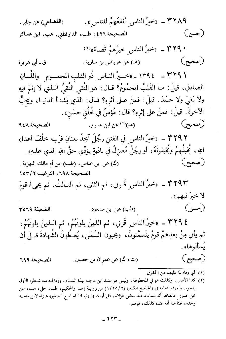 3293 - «خير الناس قرني ثم الثاني ثم الثالث ثم يجيء قوم لا خير فيهم» .