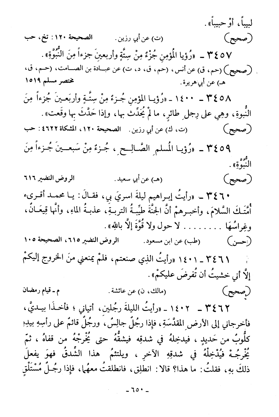 3457 - «رؤيا المؤمن جزء من ستة وأربعين جزءا من النبوة» .
