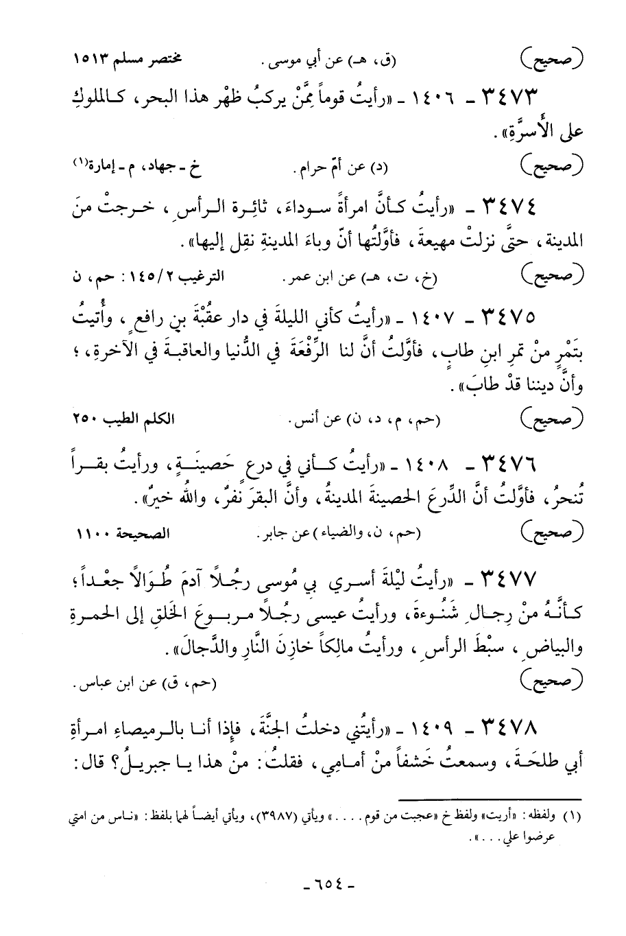 3475 - 1407 - «رأيت كأني الليلة في دار عقبة بن رافع وأتيت بتمر من تمر ابن طاب فأولت أن لنا الرفعة في الدنيا والعاقبة في الآخرة وأن ديننا قد طاب» .