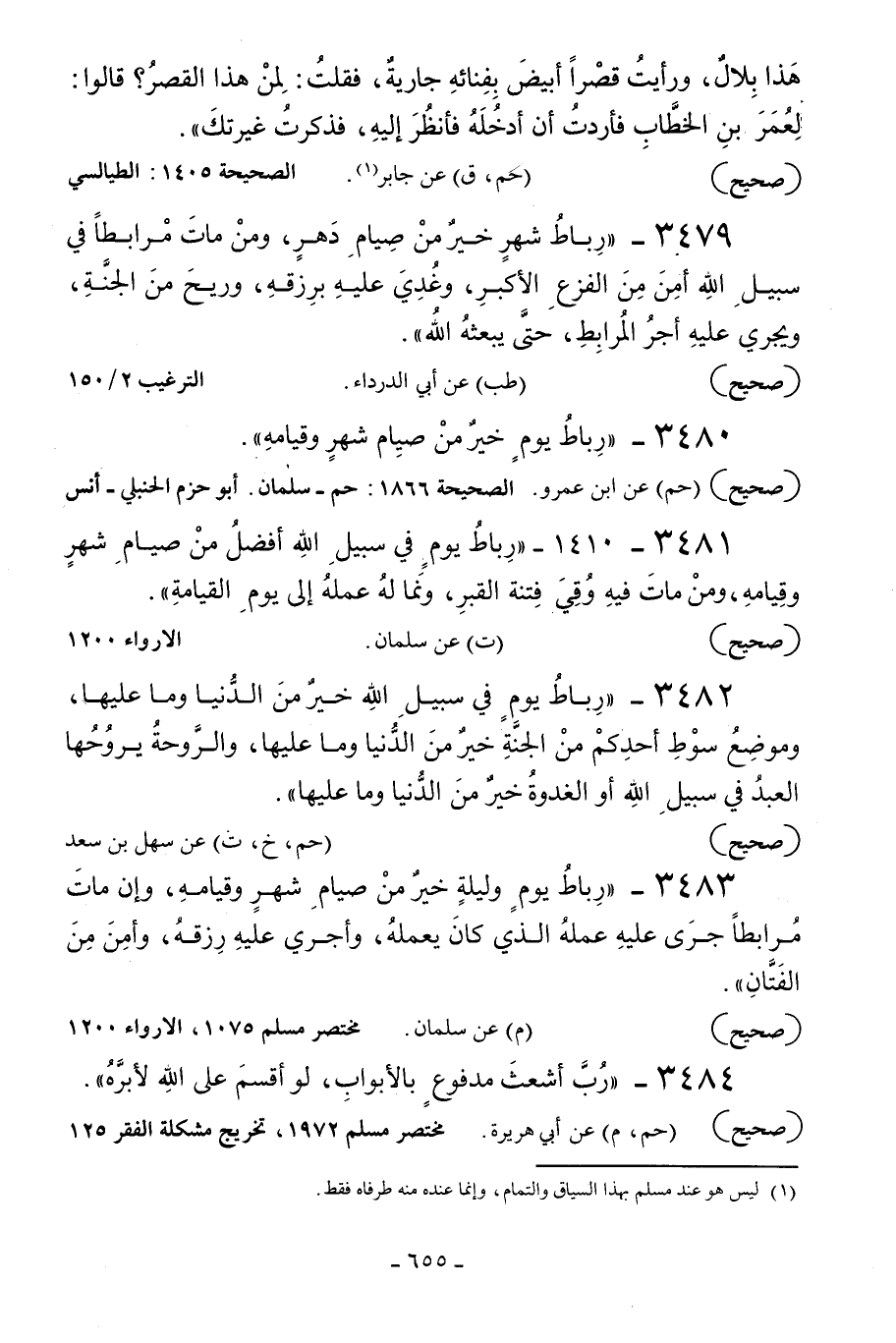 3480 - «رباط يوم خير من صيام شهر وقيامه» .