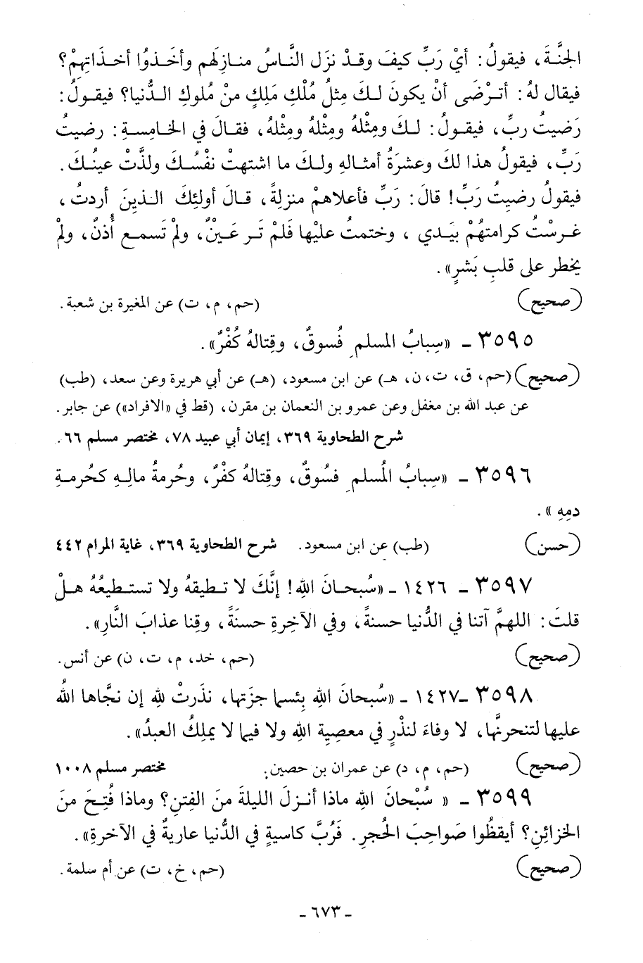 3596 - «سباب المسلم فسوق وقتاله كفر وحرمة ماله كحرمة دمه» .