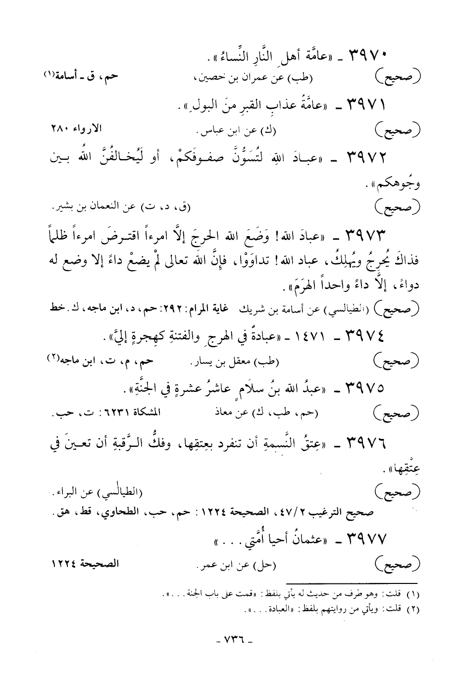3972 - «عباد الله لتسون صفوفكم أو ليخالفن الله بين وجوهكم» .