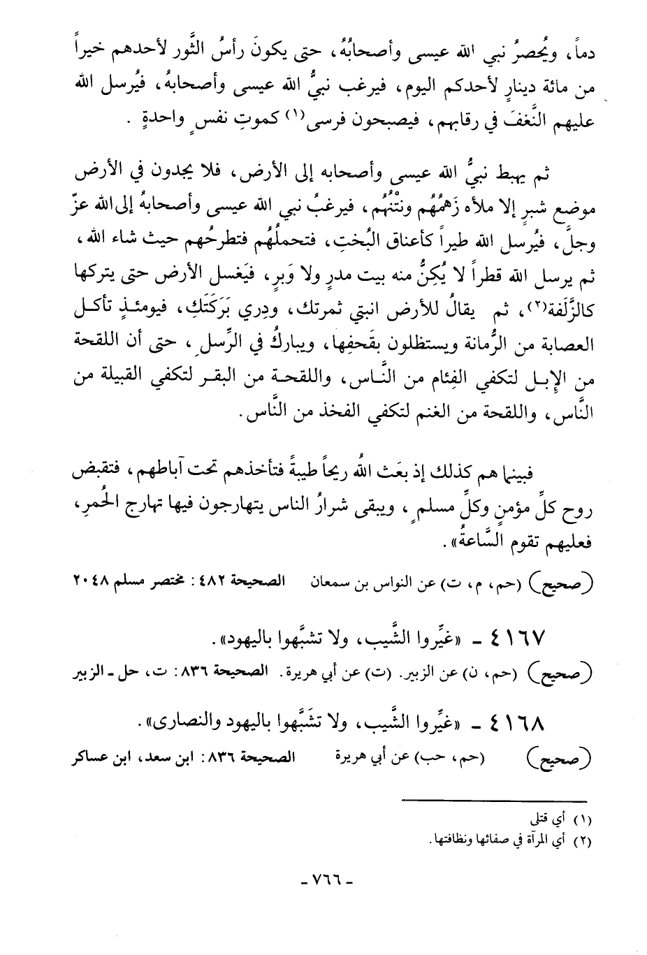 4168 - «غيروا الشيب ولا تشبهوا باليهود والنصارى» .