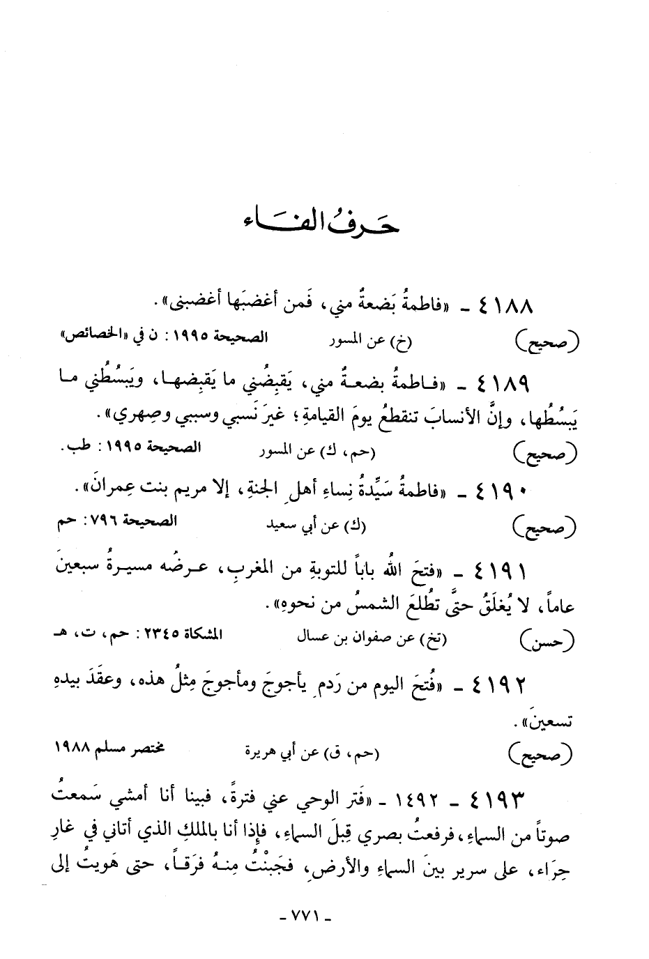 4190 - «فاطمة سيدة نساء أهل الجنة إلا مريم بنت عمران» .