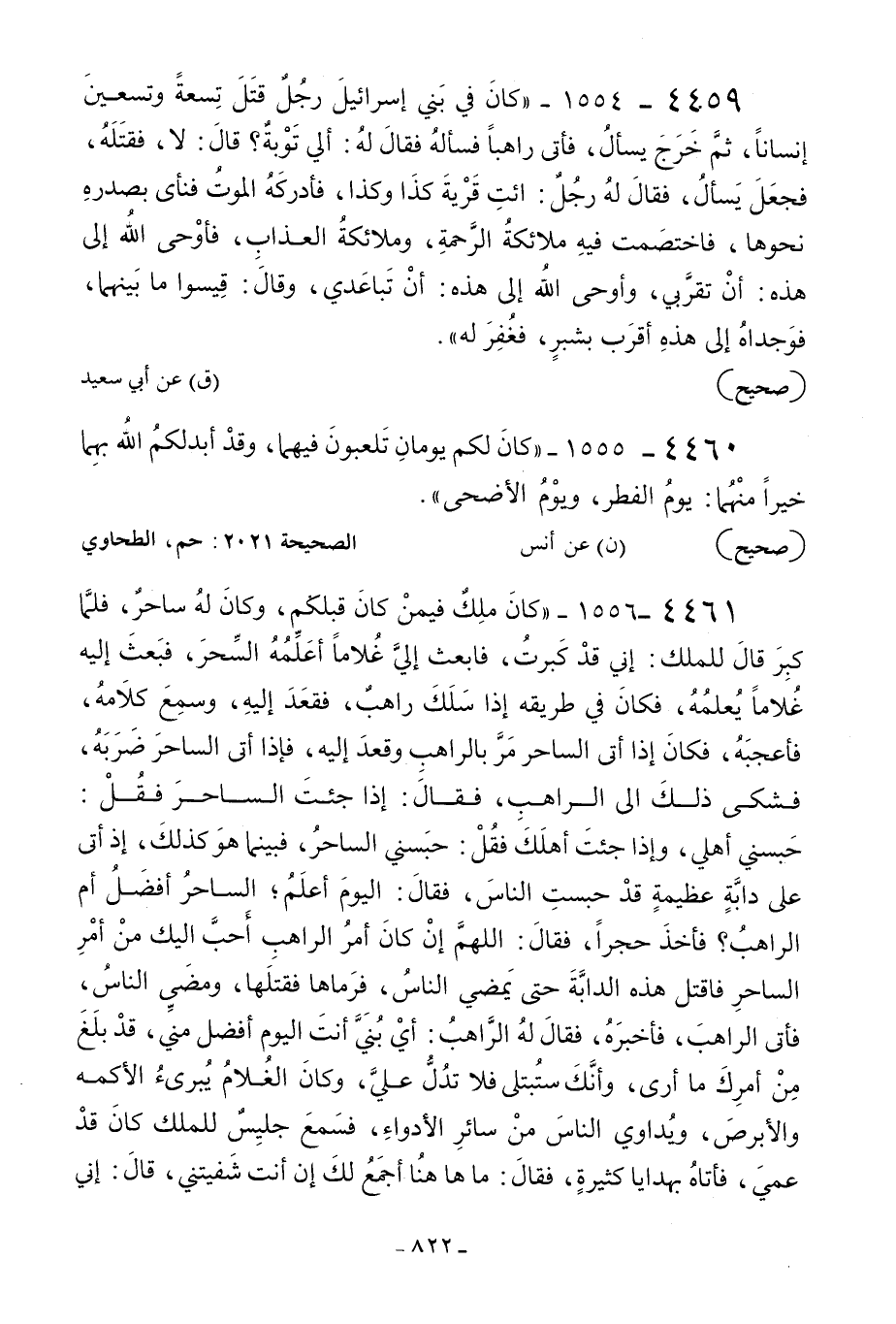 4460 - 1555 - «كان لكم يومان تلعبون فيهما وقد أبدلكم الله بهما خيرا منهما: يوم الفطر ويوم الأضحى» .