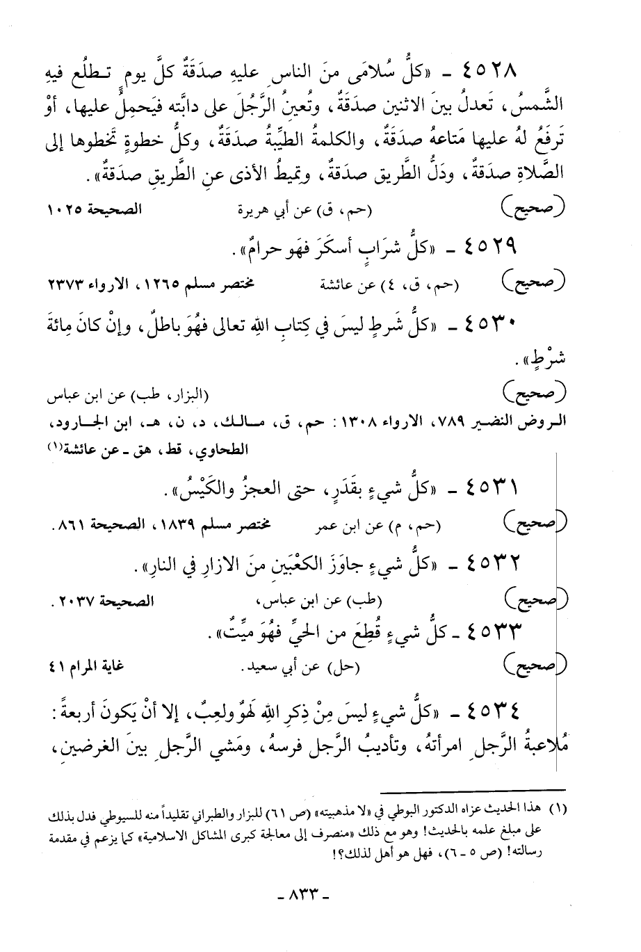 1 هذا الحديث عزاه الدكتور البوطي في [لا مذهبيته] ص 61 للبزار والطبراني تقليدا منه للسيوطي فدل بذلك على مبلغ علمه بالحديث وهو مع ذلك منصرف إلى معالجة كبرى المشاكل الاسلامية كما يزعم في مقدمة رسالته ص 5 - 6، فهل هو أهل لذلك؟!