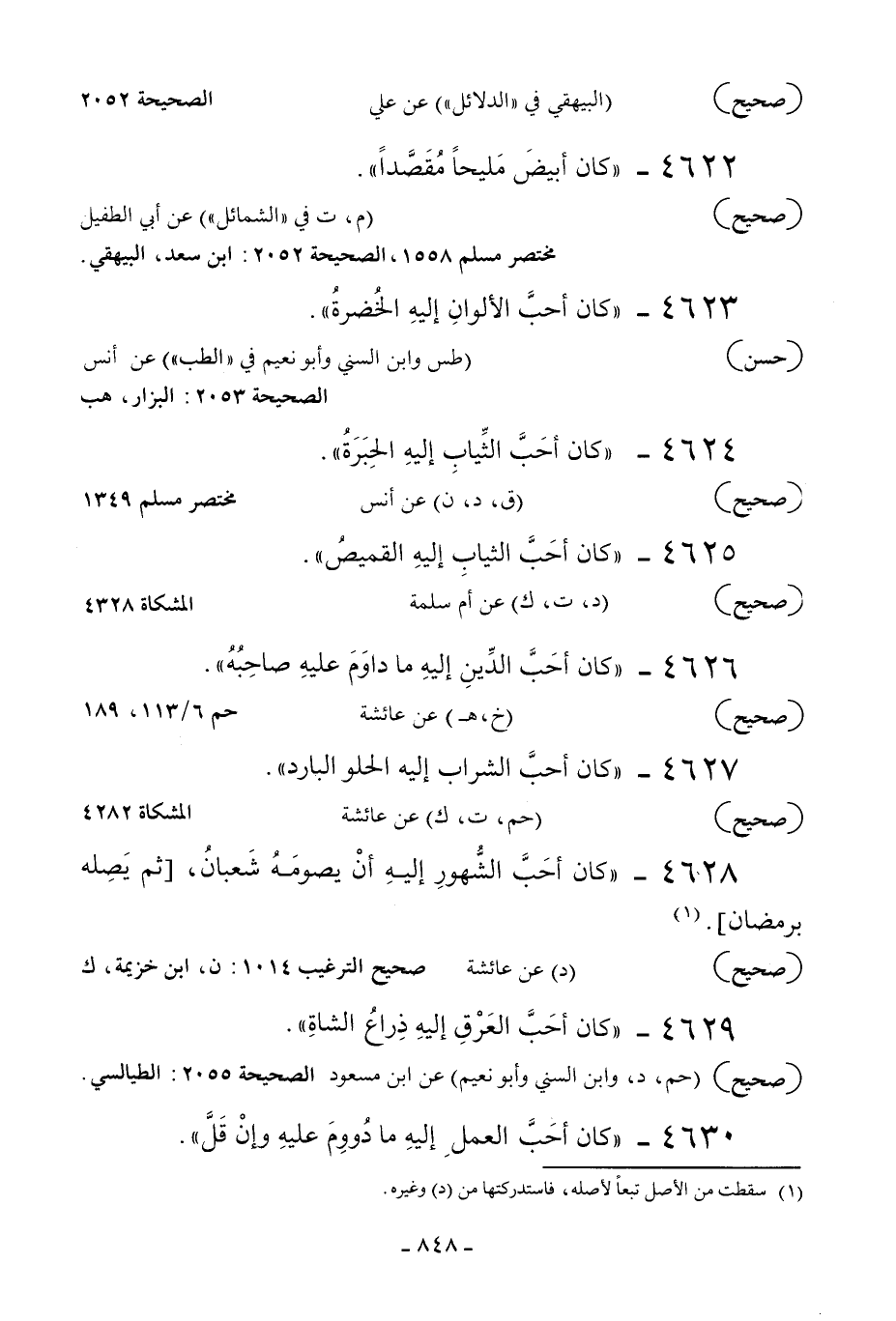 4625 - «كان أحب الثياب إليه القميص» .
