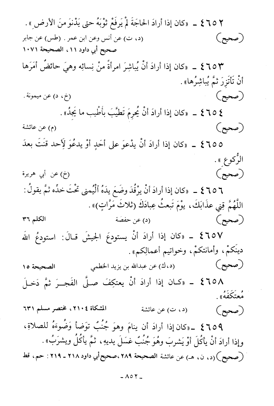 4653 - «كان إذا أراد أن يباشر امرأة من نسائه وهي حائض أمرها أن تأتزر ثم يباشرها» .