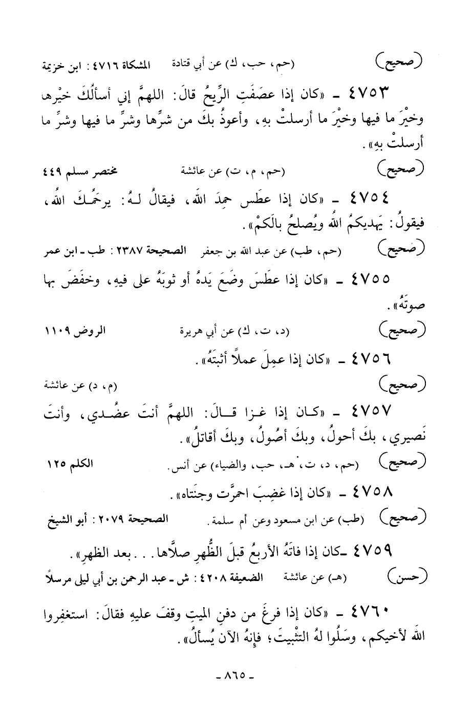 4754 - «كان إذا عطس حمد الله فيقال له: يرحمك الله فيقول: يهديكم الله ويصلح بالكم» .