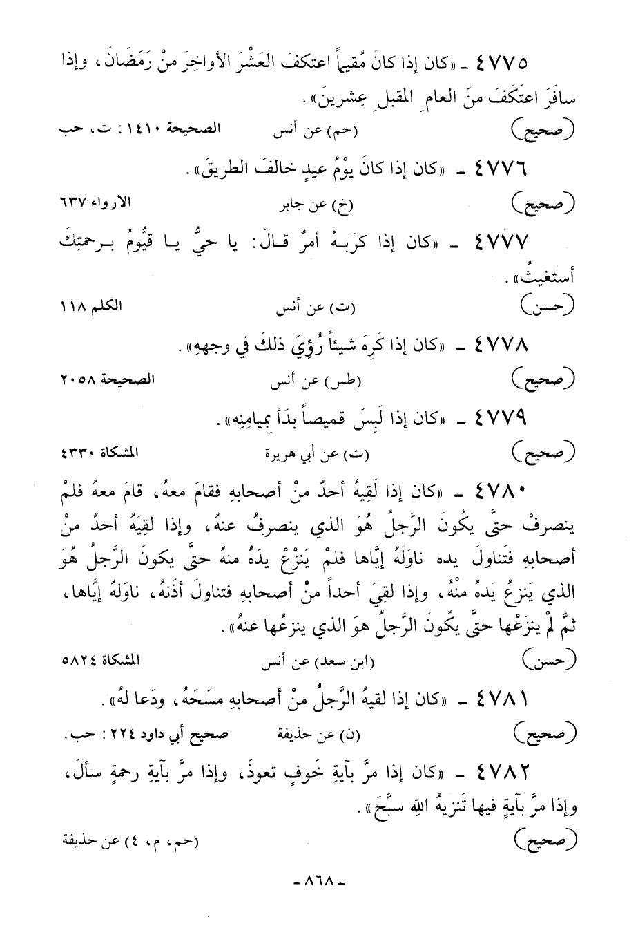 4781 - «كان إذا لقيه الرجل من أصحابه مسحه ودعا له» .