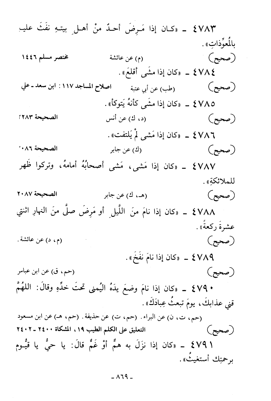 4783 - «كان إذا مرض أحد من أهل بيته نفث عليه بالمعوذات» .