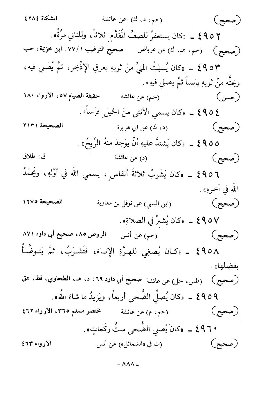 4952 - «كان يستغفر للصف المقدم ثلاثا وللثاني مرة» .
