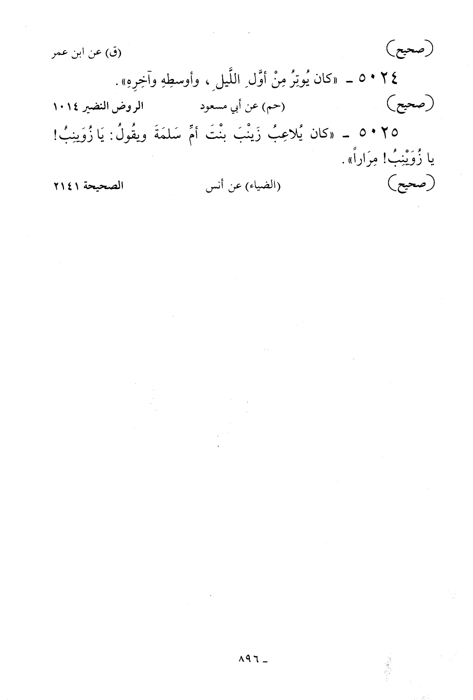 5025 - «كان يلاعب زينب بنت أم سلمة ويقول: يا زوينب! يا زوينب! مرارا» .