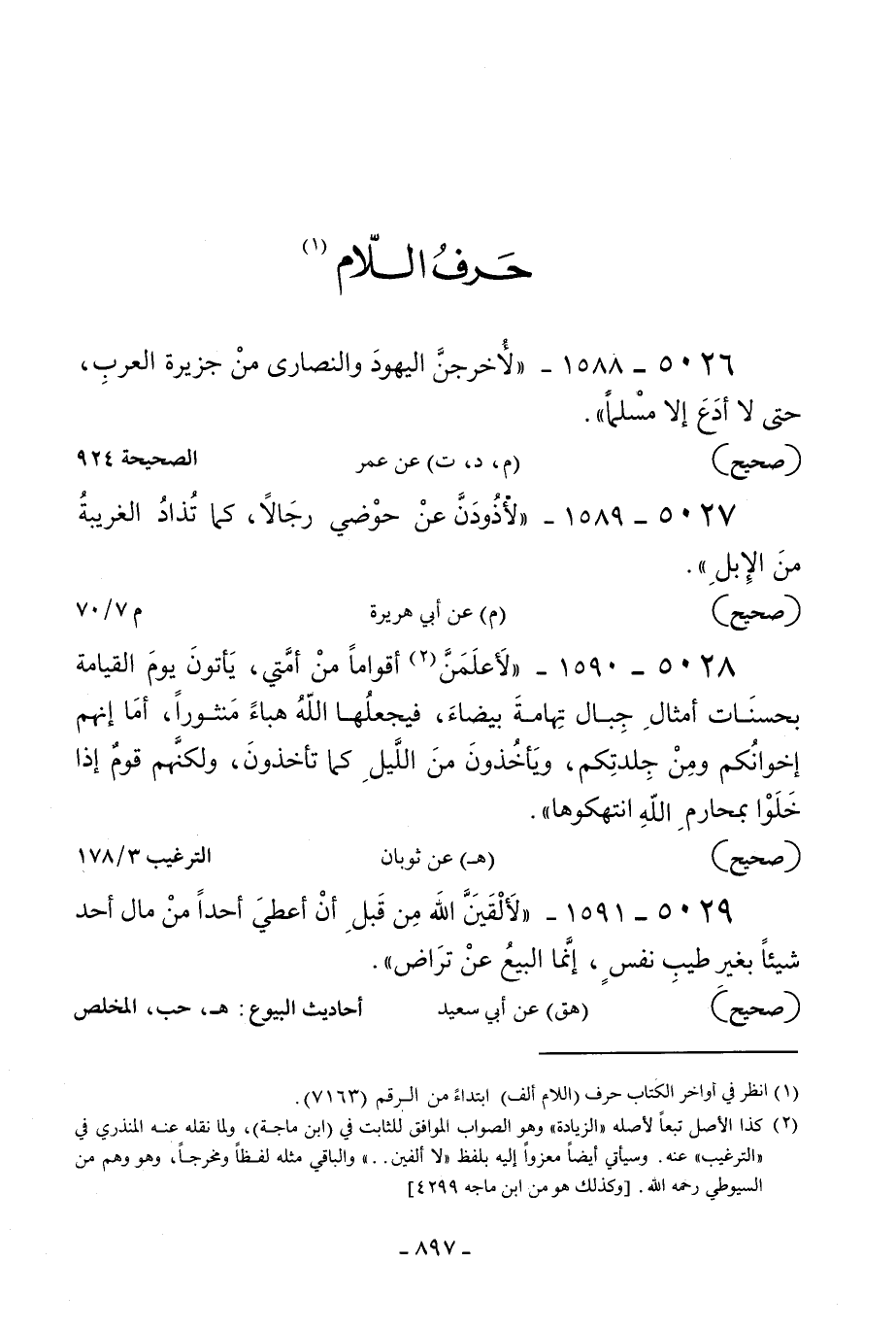 5026 - 1588 - «لأخرجن اليهود والنصارى من جزيرة العرب حتى لا أدع إلا مسلما» .